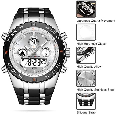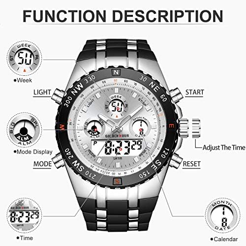 This watch is a big bulky beautiful bad ass watch I love it ill give 4 stars now untill something goes wrong 🫤 and I’ll change it,the only reason I gave 4 stars is all the bad comments and reviews. When I tell you this watch is beautiful i mean it’s gorgeous.its a shame they didn’t just put a little more into it and this would be Amazon’s best and greatest watch…Men need….excuse me,men deserve a watch like this its a spectacular creation 🤔 words don’t describe the weight the attention to detail the wide high of the wrist look all the buttons and digital I don’t impress easy and this watch…it impressed me.
